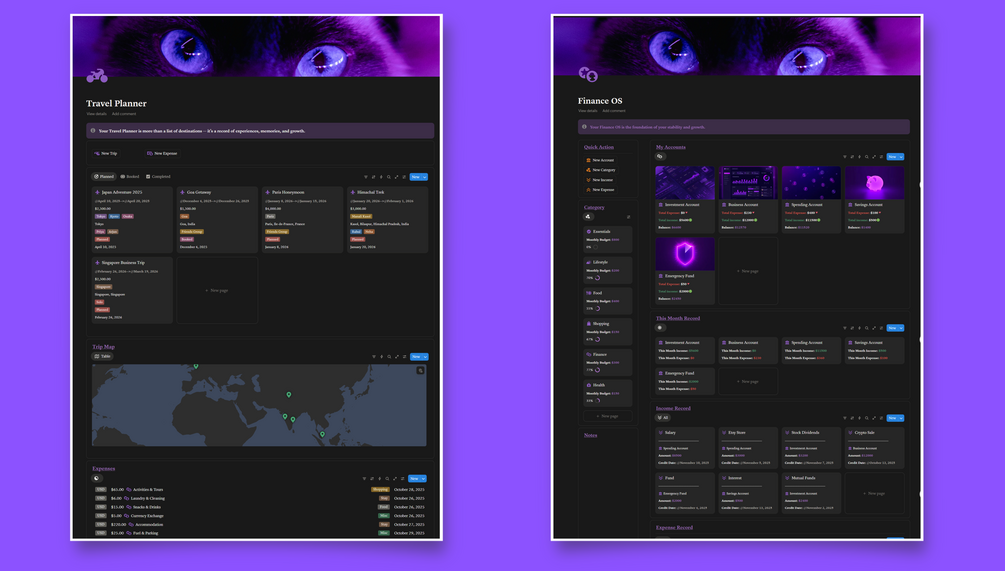 Built with a clean, minimal, and functional design, Life OS 360° transforms Notion into your personal dashboard — a single space where everything connects.