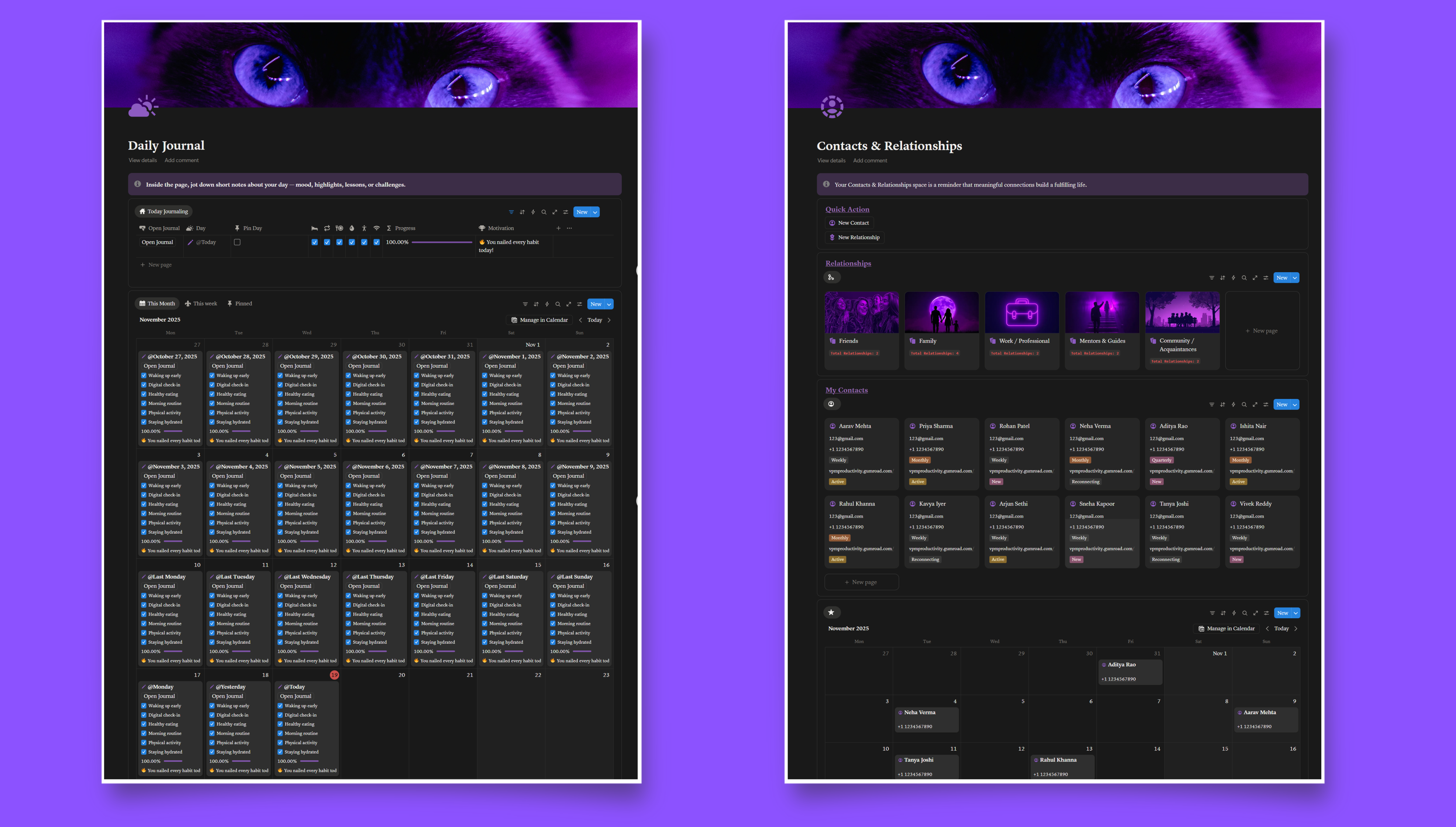 - Contacts & Relationships – Manage important people, birthdays, and connections