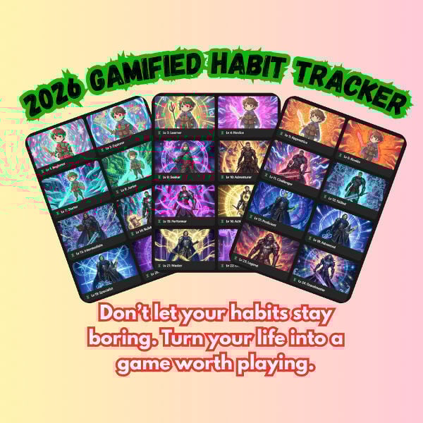 - Gamified Habit Tracker Template 2026 — Build powerful habits with game-style progress levels.