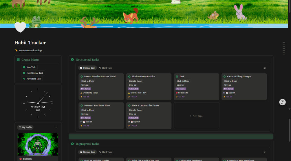 ๐ฏ Gamified Task System โ Add Normal, Hard, and Habit Quests with XP rewards.